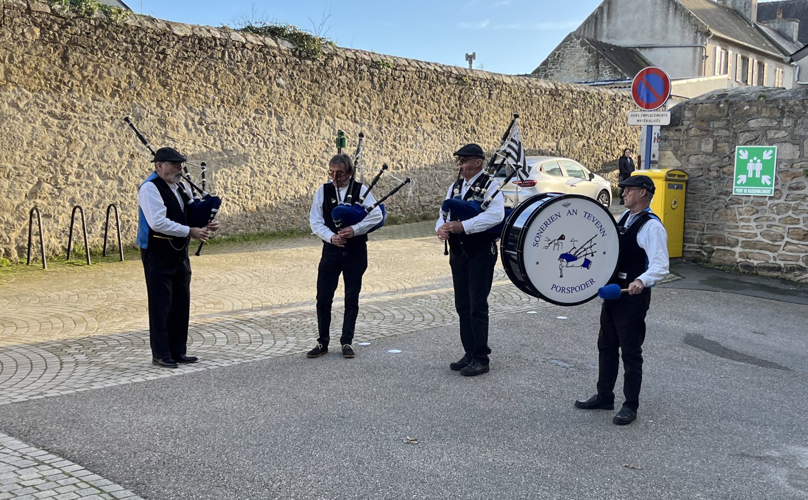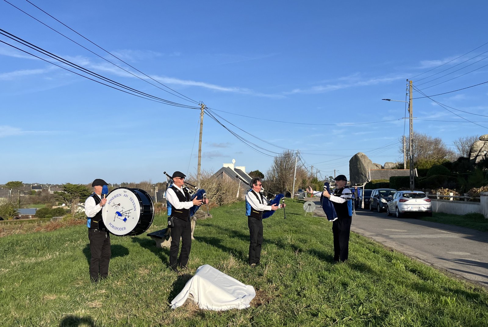 Sous un beau ciel bleu, devant une cinquantaine de personnes, le site de l’ancienne gare s’est animé avec quelques membres du bagad Sonerien an Tevenn, fidèle accompagnant de temps forts sur la commune.