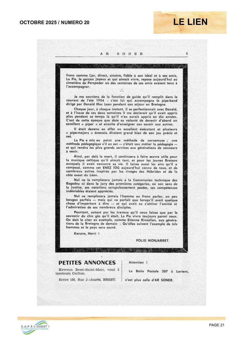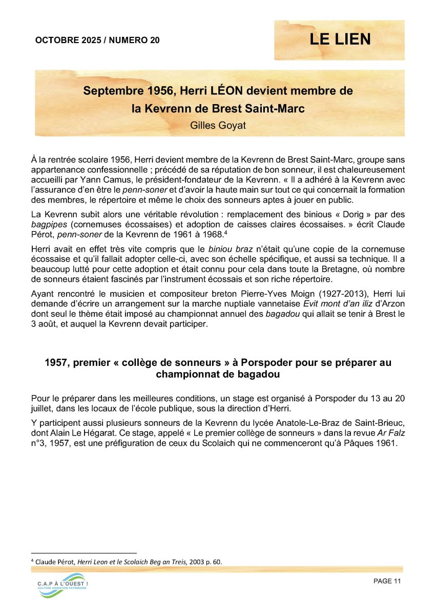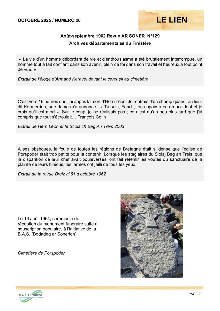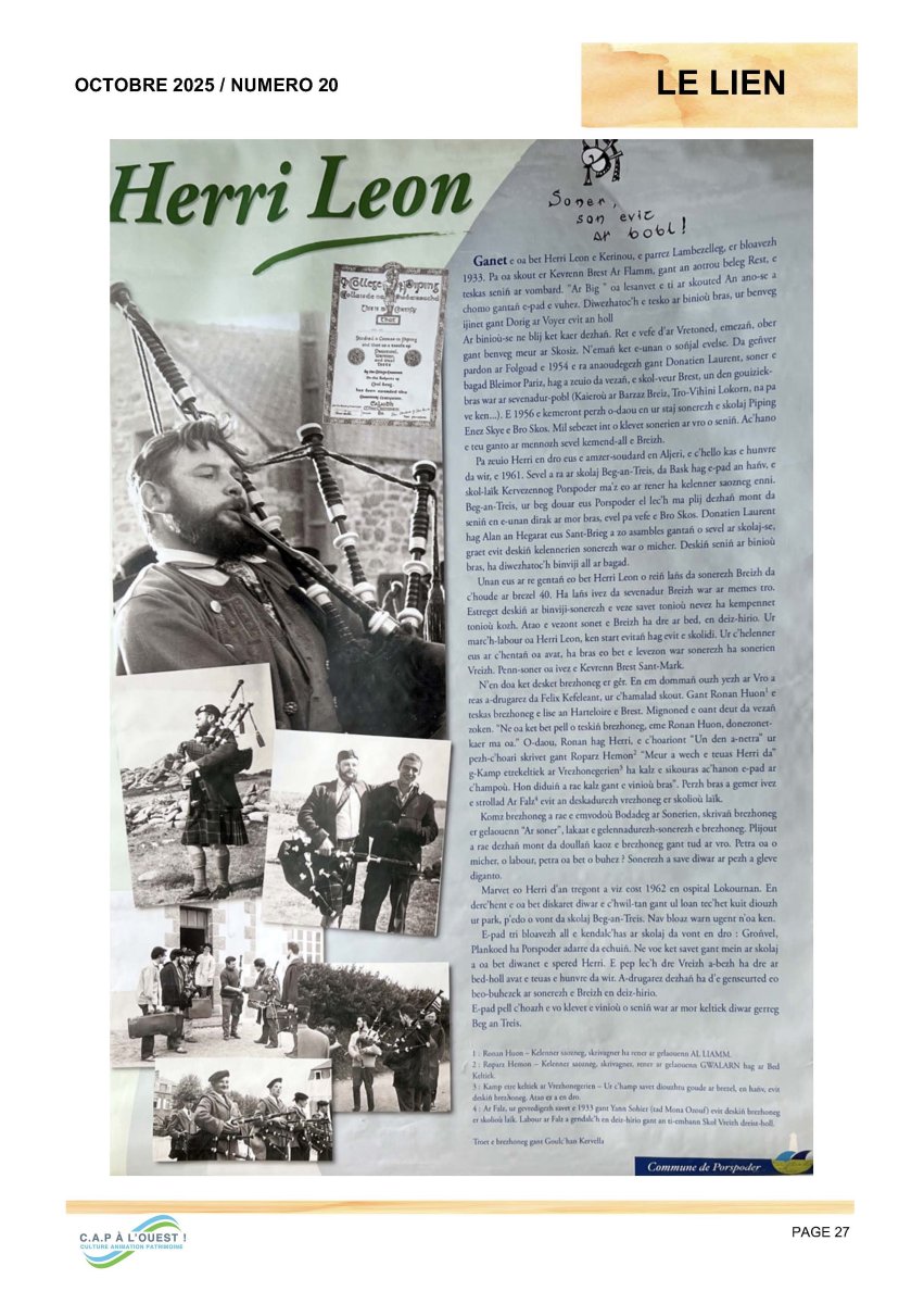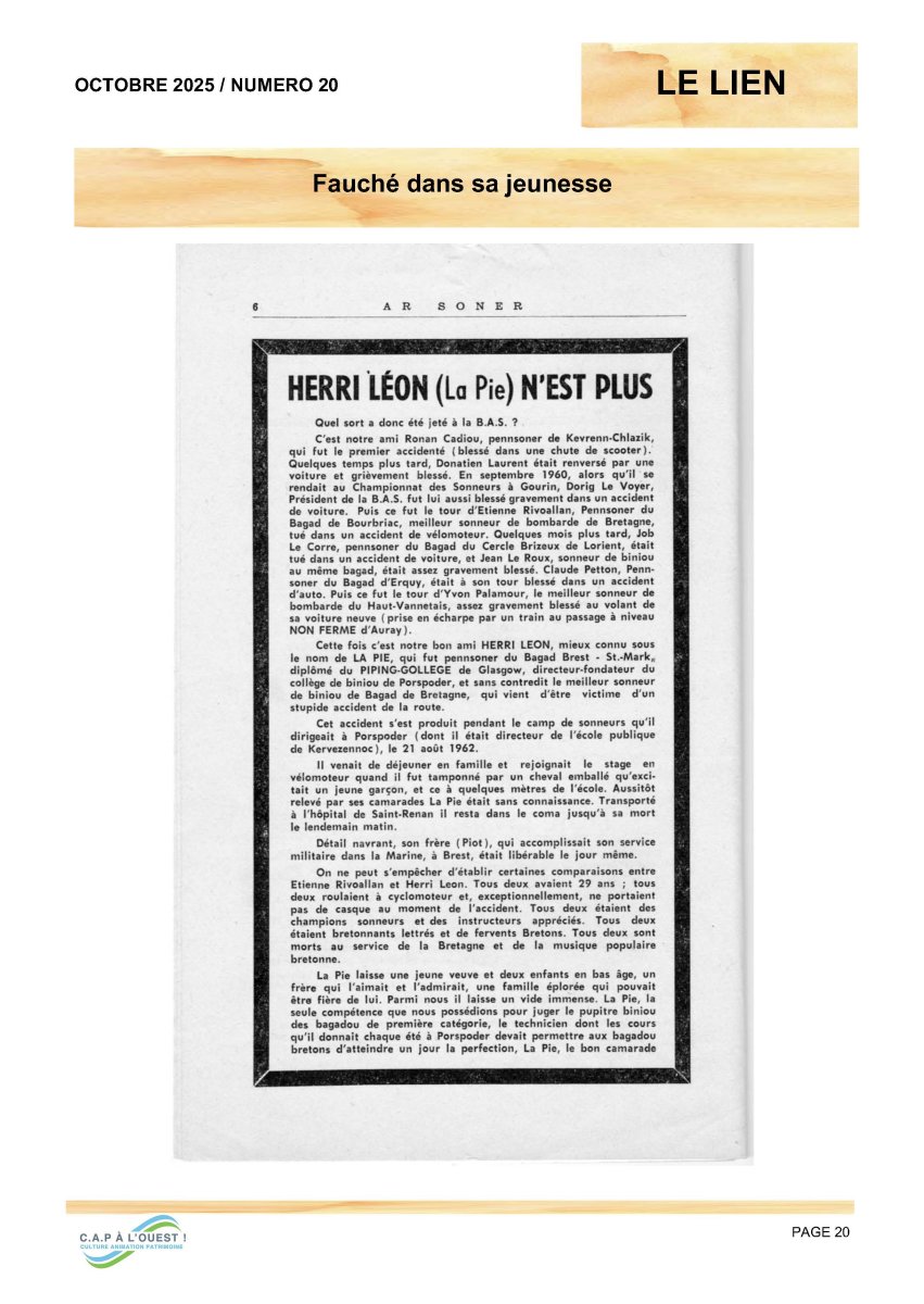 N°20 HERRI LÉON (Lambézellec 1933 - Porspoder 1962) Figure incontournable du mouvement musical Breton de l’après-guerre