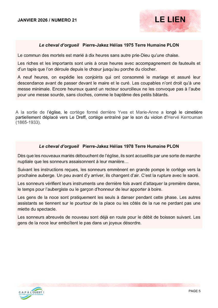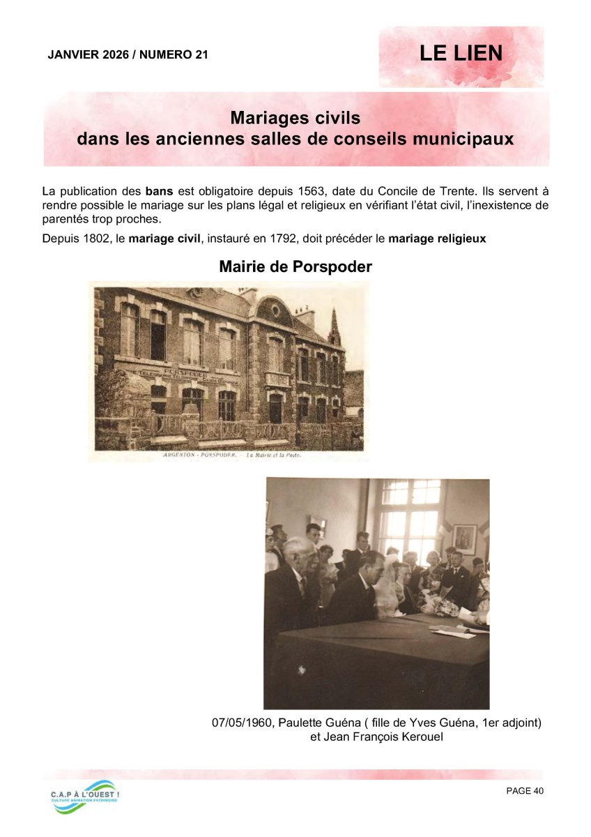C.A.P à l'Ouest ! vous invite à découvrir ce nouveau Lien, résultat d'une collecte de documents et de témoignages entreprise dès 2024. Les « heureux événements » relatés nous ont offert l'occasion d'aborder des faits de la Grande Histoire, des us et coutumes de notre territoire, d’évoquer des lieux. Nous remercions vivement toutes celles et ceux qui ont contribué à nourrir nos recherches, donnant sens à notre publication.